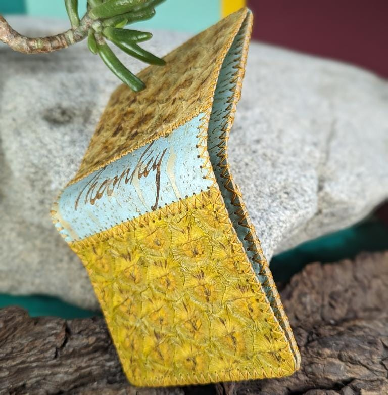 Clément Colin, artisan-designer écologue, a fondé Moonkey en 2021, une microentreprise de maroquinerie innovante qui utilise des cuirs végétaux teintés naturellement. Sa mission : proposer une alternative durable et éthique au cuir animal, tout en offrant des produits uniques et raffinés. Après un parcours en ingénierie des matériaux et en design, Clément Colin s’est lancé le défi de remplacer les matériaux polluants de l’industrie de la maroquinerie. Son choix s’est porté sur les peaux de fruits, notamment les cucurbitacées (melons, courges, citrouilles), les rutacées (agrumes) et les broméliacées (ananas). Épaisses, fibreuses et naturellement résistantes, ces peaux offrent une alternative prometteuse au cuir animal.